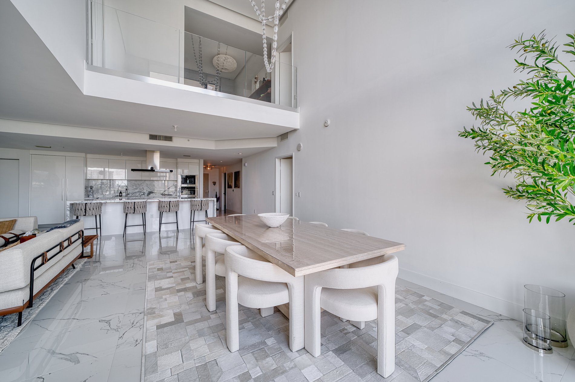 Designed for elevated living, the home features floor-to-ceiling windows, private terraces off every living area, and a seamless indoor-outdoor flow. Rich marble finishes, spa-inspired bathrooms with integrated mirror TVs, and a chef’s kitchen appointed with Wolf and Bosch appliances elevate both comfort and design.